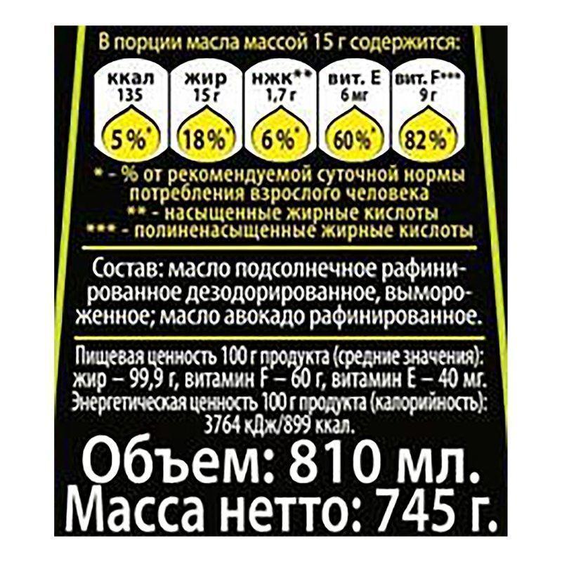 Масло Алтеро подсолнечное с добавлением масла авокадо 810мл