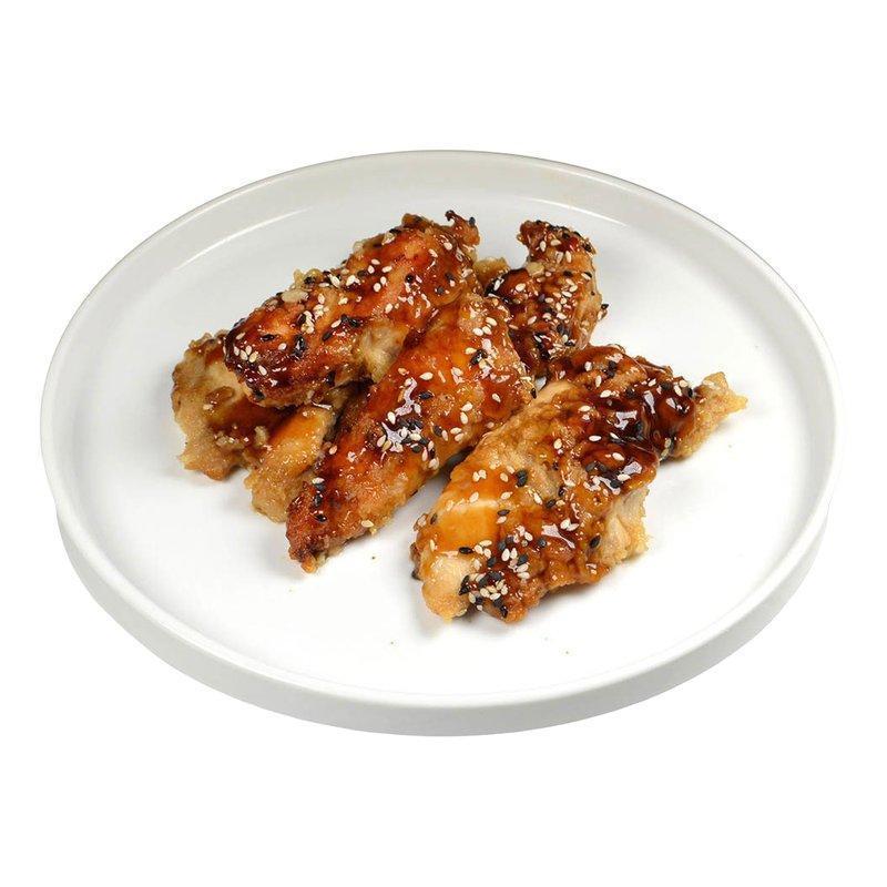 Состав: филе куриное, крахмал,соус терияки, масло растит, кунжут, перец св,соль,специи Пищевая и энергетичес.ценность в 100 г продукта: белки –19,2г ; жиры -12,1г ; углеводы -г Калорийность –188 ккал, кдж 787 Срок годности и условия хранения при t +2/+6°С 24 часа ЕАС
