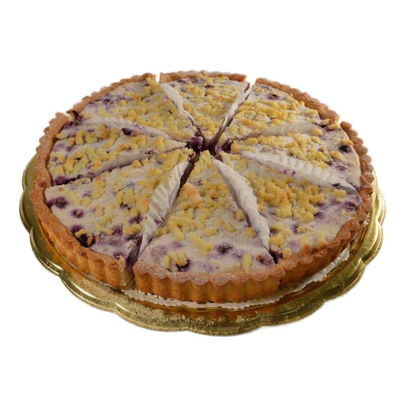 Состав продукта: тесто песочное бездрожжевое(мука пшеничнея высший сорт,маргарин(рафинированные дезодорированные растительные масла в натуральном и модифицированном виде, в том числе соевое: вода, эмульгаторы: эфиры полиглицерина и жирных кислот, моно- диглицериды жирных кислот. соль, сахар, консервант сорбат калия, регулятор кислотности лимонная кислота, ароматизатор, краситель бета-каротин, антиокислители: аскорбиновая кислота, альфа-токоферол),сахарный песок, яйцо куриное, сода пищевая Е500), начинка творожная( творожная масса(творог(молоко сухое обезжиренное, масло сливочное, вода, молокосвертывающий ферментный препарат животного происхождения, закваска), сахар, ароматизатор ванилин идентичный натуральному), сахарный песок, яйцо куриное, ванилин), черника свежая, яйцо куриное, сахарный песок, сахарная термостабильная пудра(сахарная пудра(сахар белый свекловичный категории ТС2),жир растительный,масло рапсовое).