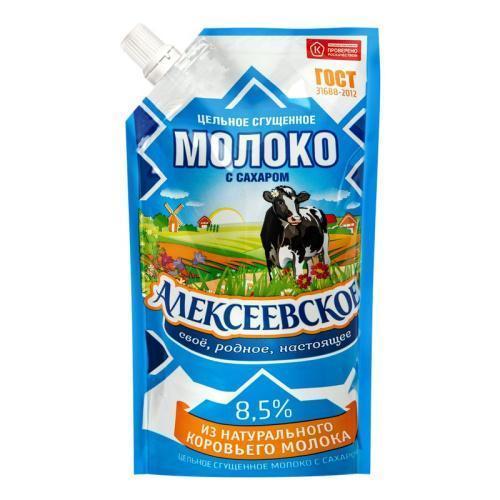 Молоко цельное Алексеевское сгущенное 270г сашет