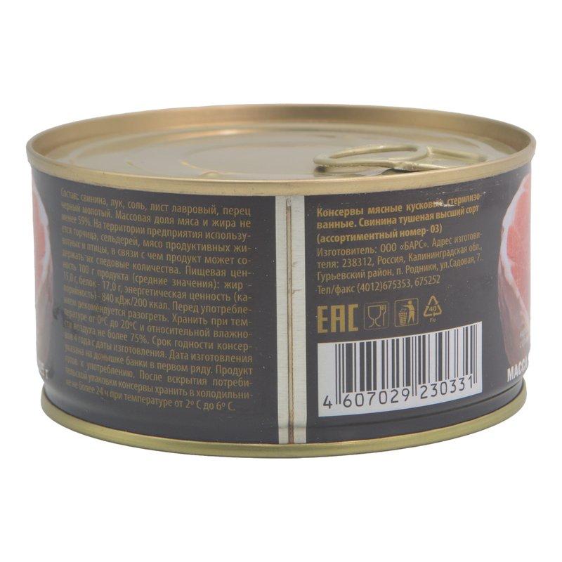 Свинина Барс тушеная Экстра ГОСТ в/с 325г ж/б ключ