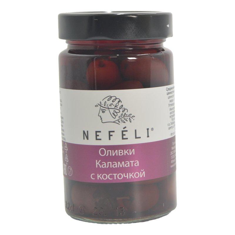 Оливки Нефели Каламата с косточкой 300г ст/б