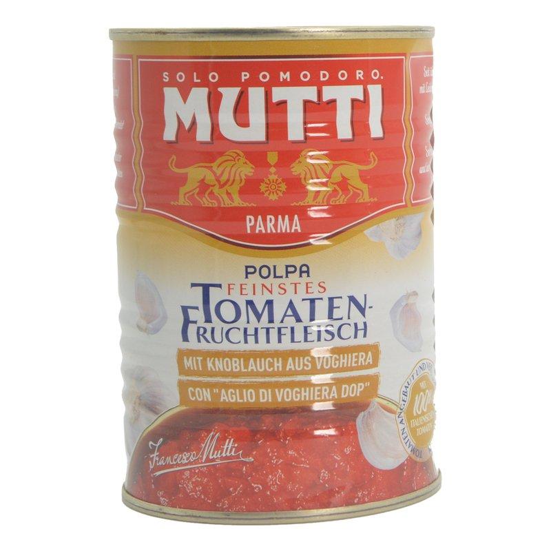 Томаты Мутти резаные кубиками в томатном соке с чесноком 400г