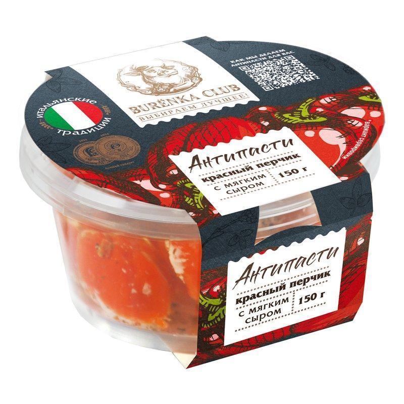 Перчик Буренка клаб антипасти красный с мягким сыром в масле 150г