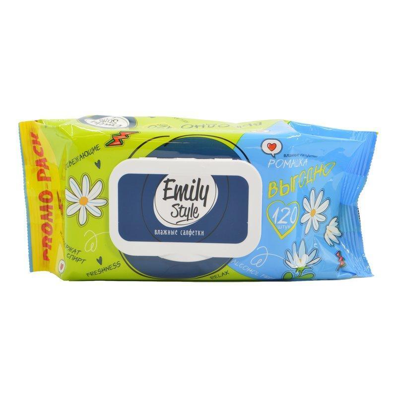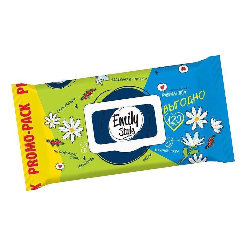 Салфетки Эмили Стайл Ромашка гигиенические влажные 120шт с крышкой