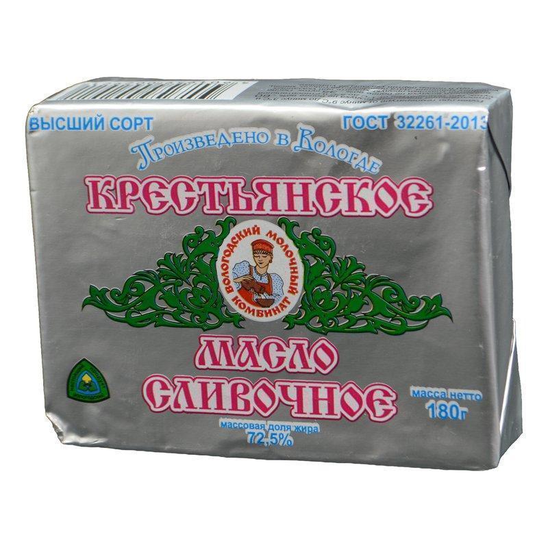 Масло Вологодский мк крестьянское сливочное 72,5% 180г