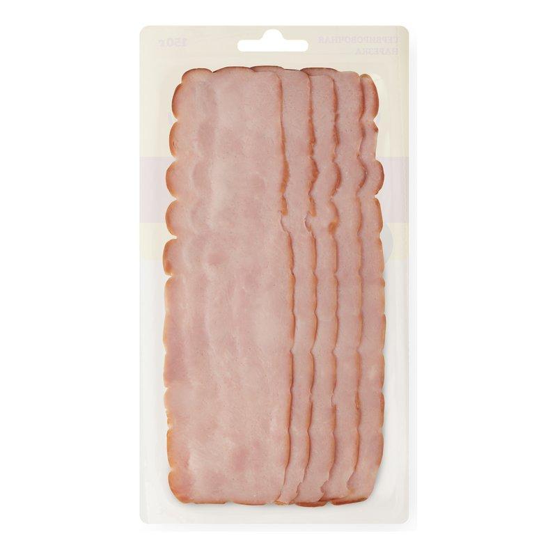 свинина, вода, комплексные пищевые добавки (стабилизаторы: Е1442, крахмал ацетилированный, Е407а, ксантановая камедь, полифосфат натрия, метилцеллюлоза; посолочно-нитритная смесь (соль, фиксатор окраски Е250), пищевые волокна, соевый белок, сахар, регуляторы кислотности: пирофосфаты, трифосфаты, ацетаты и цитраты натрия; ароматизаторы, усилитель вкуса и аромата Е621, антиокислитель аскорбат натрия, желирующий агент хлорид калия); животный белок свиной, соль, краситель кармины