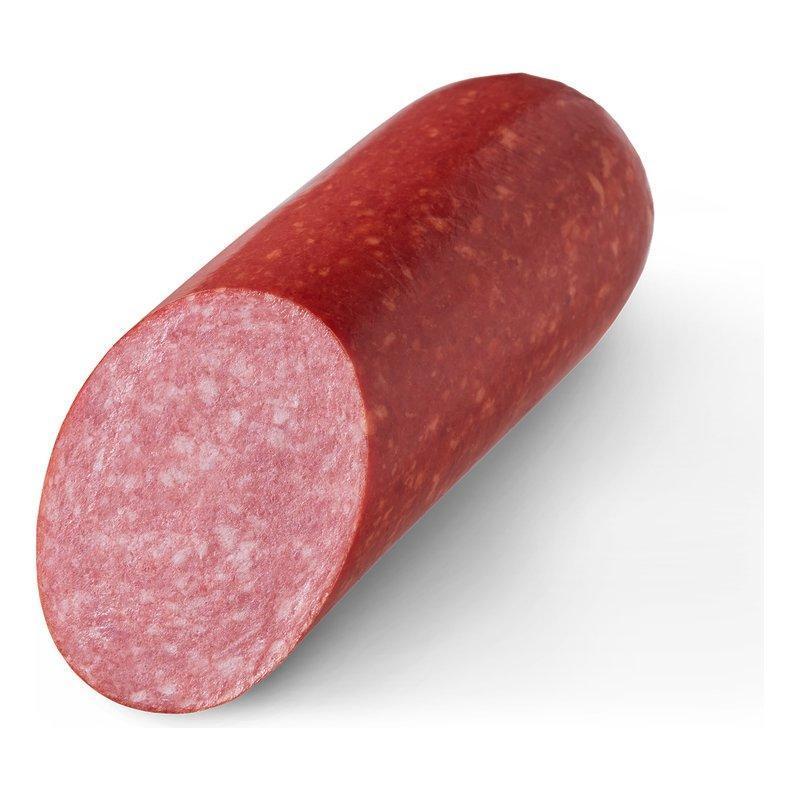 свинина, вода, белковый стабилизатор, говядина, комплексные пищевые добавки (молоко сухое обезжиренное, стабилизаторы: Е407, камеди (рожкового дерева, гуаровая, ксантановая, тары), полифосфаты, моно- и диглицериды жирных кислот; смесь посолочно-нитритная (соль, фиксатор окраски Е250), животный белок говяжий, регуляторы кислотности: пирофосфаты, трифосфаты, ацетаты и цитраты натрия; специи, сахар, усилитель вкуса и аромата Е621, ароматизаторы, антиокислитель аскорбиновая кислота, желирующий агент хлорид калия); соль, сухой яичный меланж, краситель кармины