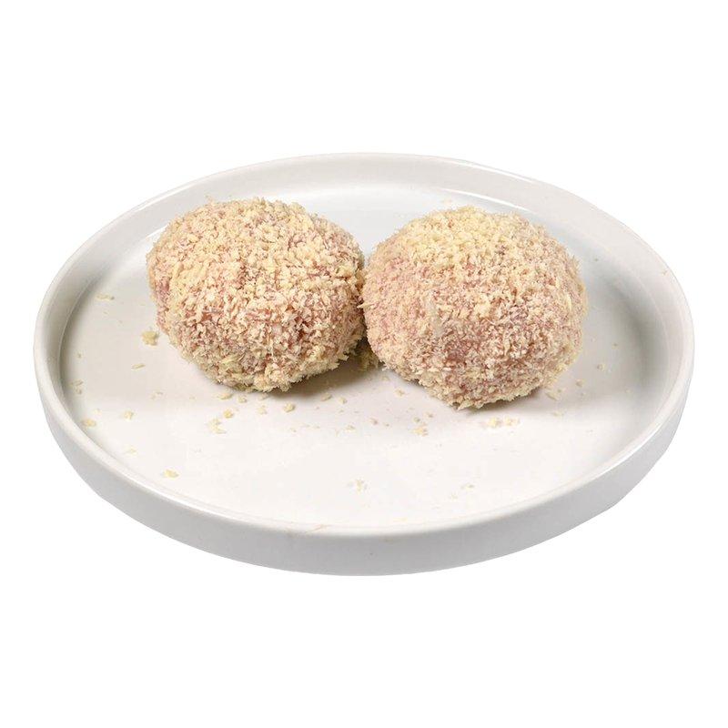 Состав продукта: свинина охлажденная, ветчина(филе куриное,вода очищенная питьевая,картофельный крахмал,свиной белок,молочная сыворотка,стабилизатор(каррагинан),виноградный сахар,регулятор кислотности(трифосфаты,ацетаты натрия),антиокислители(изоаскорбат натрия,лимонная кислота),филе грудки индейки,соль поваренная пищевая, гемоглобин свиной, краситель(кармины), фиксатор окраски(нитрит натрия)), сыр(молоко обезжиренное пастеризованное,сливки пастеризованные,соль поваренная пищевая,закваска мезофильных молочнокислых микроорганизмов,молокосвёртывающий ферментный препарат микробного происхождения,молокосвёртывающий фермент микробиального происхождения,соль поваренная пищевая,уплотнитель хлорид кальция Е509), панировочные сухари панко(мука пшеничная, глюкоза, кукурузный крахмал, масло пальмовое, дрожжи хлебопекарные, соль, порошок соевый, вещества для обработки муки Е516 Е517), яйцо куриное, перец черный молотый.