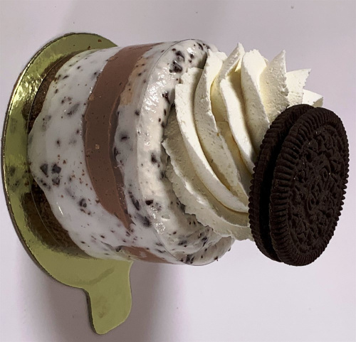 состав:смесь бисквит,масло раст,яйца,глазурь шок ЕАС молоко,шокобелла,печенье,крем раст,карибе Пищевая и энергетическая ценность в 100 г продукта: белки -4,2 г.жиры –14,8г.углеводы -47,8г.Калорийность: 338ккал/1413кДж Срок годности и условия хранения: при t 4+/-2°С 72 часа Дата приготовления указана на упаковке.