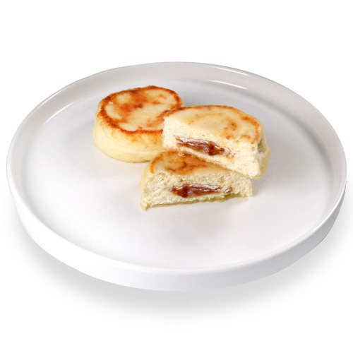 Состав продукта:сырники творожные(творог(молоко сухое обезжиренное,масло сливочное,вода,молокосвертывающий ферментный препарат животного происхождения,закваска),сахарный песок,крупа манная,мука пшеничная хлебопекарная в/с,масло растительное подсолнечное рафинированное дезодорированное,яйцо куриное,соль пищевая поваренная), крем кондитерский"Сгущёнка варёная"(сахар,вода,сухое обезжиреное молоко,заменитель молочного жира(рафинированные дезодорированные растительные масла(пальмовое,подсолнечное),эмульгатор Е471,антиокислитель Е308),стабилизатор Е452(I),консервант Е202).