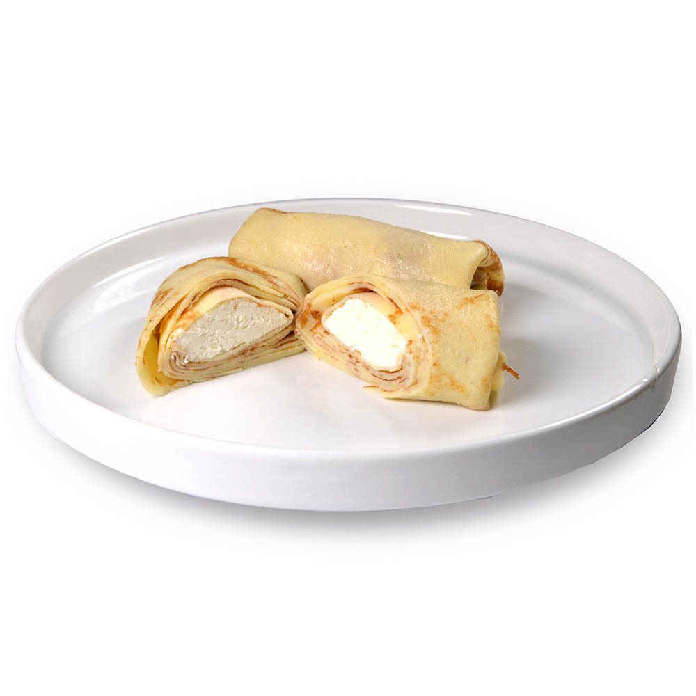 Состав продукта: блины оболочка (молоко питьевое 2.5% жирности(молоко цельное,молоко обезжиренное),мука пшеничная хлебопекарная высший сорт, яйцо куриное, сахарный песок, масло сливочное 82.5%, масло растительное подсолнечное рафинированное дезодорированное, соль пищевая поваренная), фарш творожный(творожная масса(творог(молоко сухое обезжиренное, масло сливочное, вода, молокосвертывающий ферментный препарат животного происхождения, закваска), сахар, ароматизатор ванилин идентичный натуральному), сметана15%(сливки,закваска), сахарный песок, ванилин, соль поваренная пищевая).