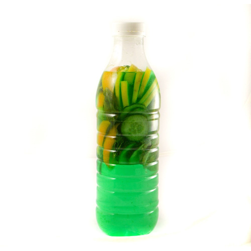 Состав:вода минеральная,лимон,огурцы свежие, апельсины,сахар,сироп,мята Пищевая и энергетическая ценность в 100г продукта: белки-0,13г.жиры-0,01г.углеводы-4,78г.Калорийность: 21ккал89кДж Срок годности и условия хранения: при t 4+/-2 С - 24 часа