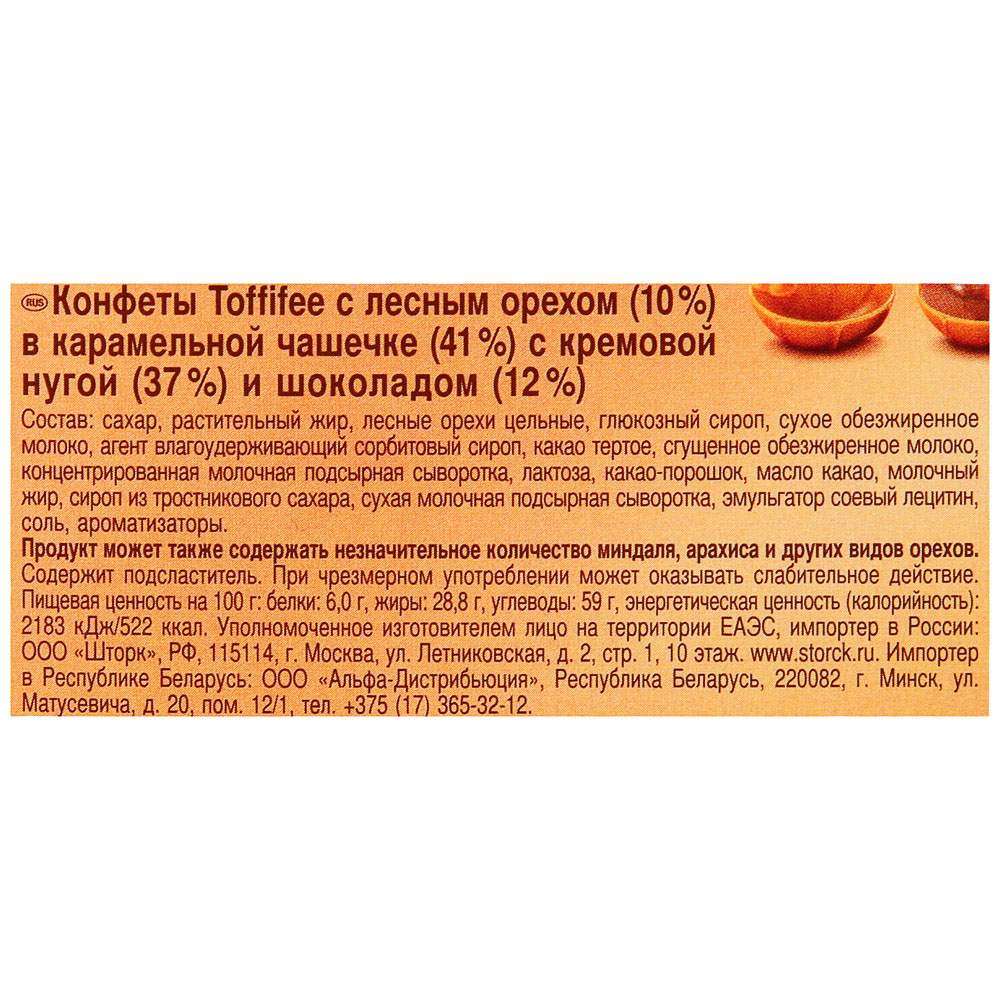 Конфеты Тоффифи лесной орех в карамели 125г