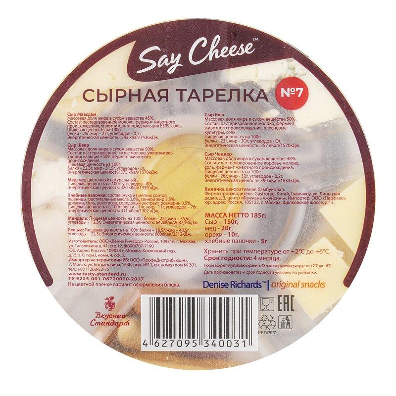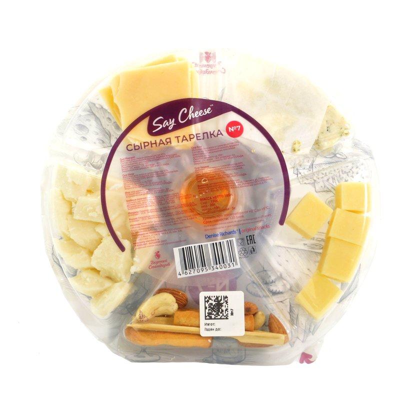Тарелка сырная №7 сыр блю маасдам шевр чеддер мед орехи хл. палочки 185г