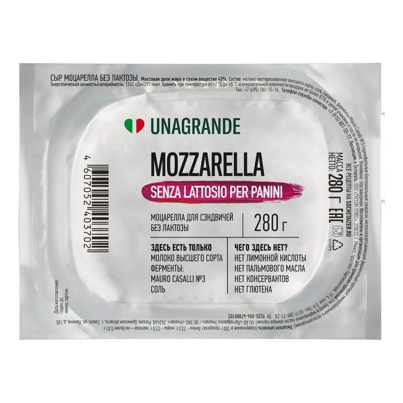Сыр Унагранде Моцарелла Буона для сэндвичей 45% 280г