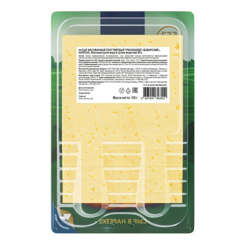 Сыр Хохланд Грюнландер Баварский полутвердый нарезка 130г