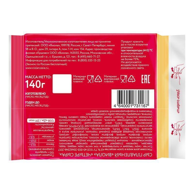 Сыр Виола плавленый четыре сыра 45% 140г слайсы