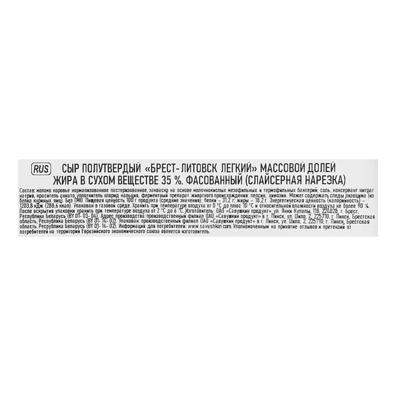 Сыр Брест-Литовск легкий слайсы 35% 130г