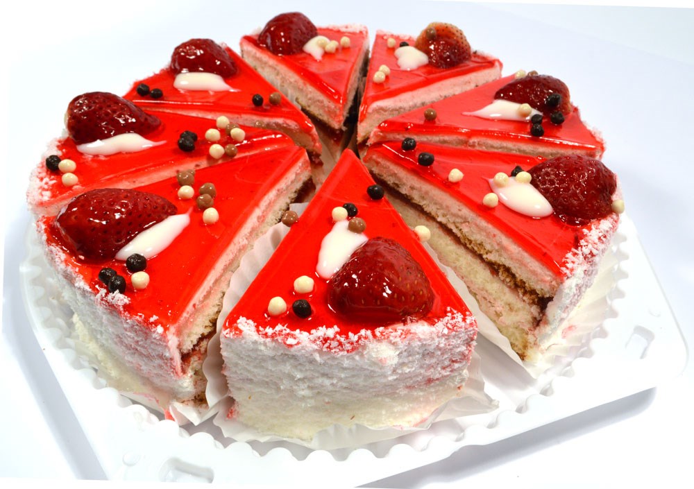 Состав:крем раст,масса жел,молоко,мука пш в/с,яйцо, сахар,конф клубника,кефир,клубника,масло раст ЕАС Пищевая и энергетическая ценность в 100 г продукта: белки-10,8г.жиры–6,7г.углеводы-49,5г.Калорийность: 302ккал/1261кДж Срок годностии условия хранения: при t 4+/-2°С- 72 часа Дата приготовления указана на упаковке.