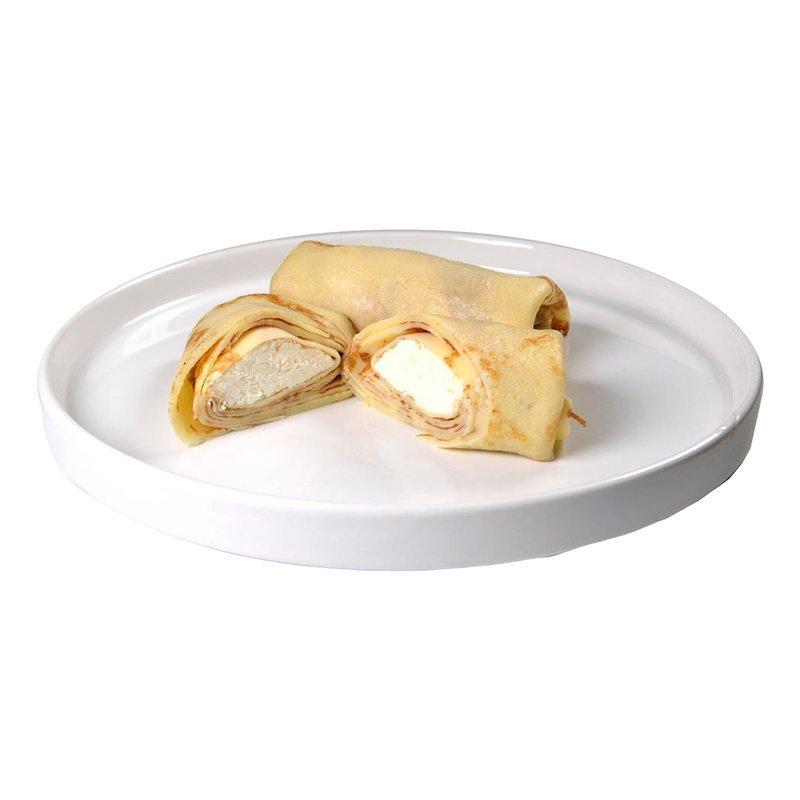 Состав продукта: блины оболочка (молоко питьевое 2.5% жирности(молоко цельное,молоко обезжиренное),мука пшеничная хлебопекарная высший сорт, яйцо куриное, сахарный песок, масло сливочное 82.5%, масло растительное подсолнечное рафинированное дезодорированное, соль пищевая поваренная), фарш творожный(творожная масса(творог(молоко сухое обезжиренное, масло сливочное, вода, молокосвертывающий ферментный препарат животного происхождения, закваска), сахар, ароматизатор ванилин идентичный натуральному), сметана15%(сливки,закваска), сахарный песок, ванилин, соль поваренная пищевая).